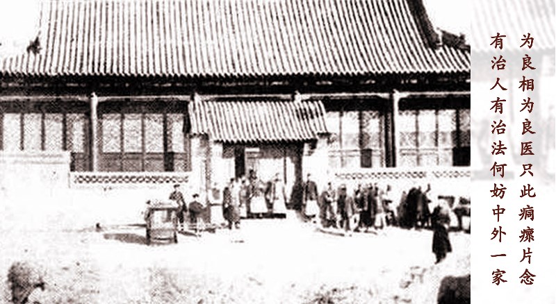 1880年秋,李鸿章积极倡导天津各界人士捐款,在天津法租界海大道建立了一所名为施医养病院的西医医院。1880年11月1日正式开业,李鸿章主持了开院仪式,并题写对联“为良相为良医只此痌瘝片念,有治人有治法何妨中外一家”。