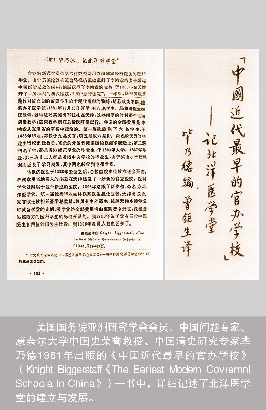 In 1894, Li Hongzhang wrote “Memorandum on Establishing Medical School in Hospital” and pleaded Emperor Guangxu to build the first state-run college in western medicine in modern China—Beiyang Medical School.